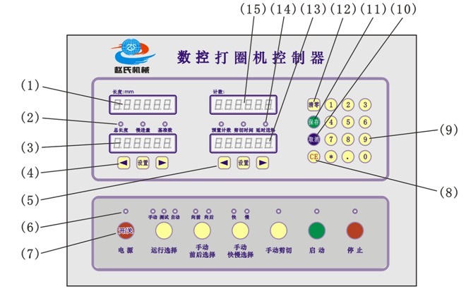 (1).實(shí)時(shí)進(jìn)料長(zhǎng)度數(shù)碼顯示窗,顯示單位:mm,